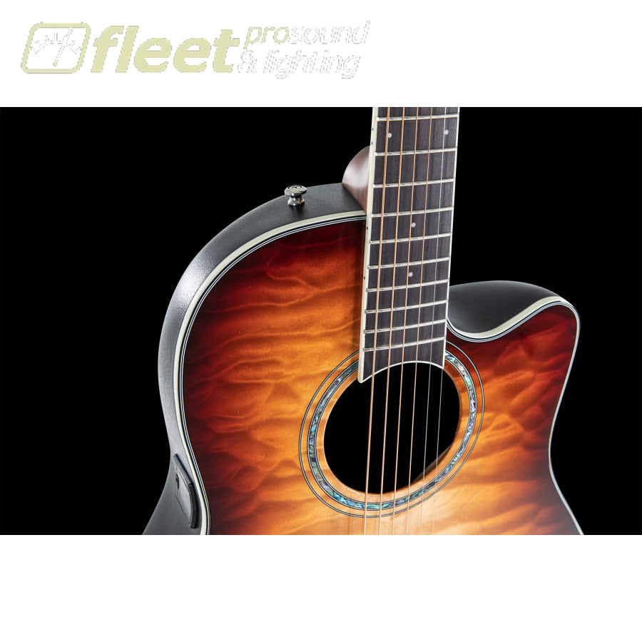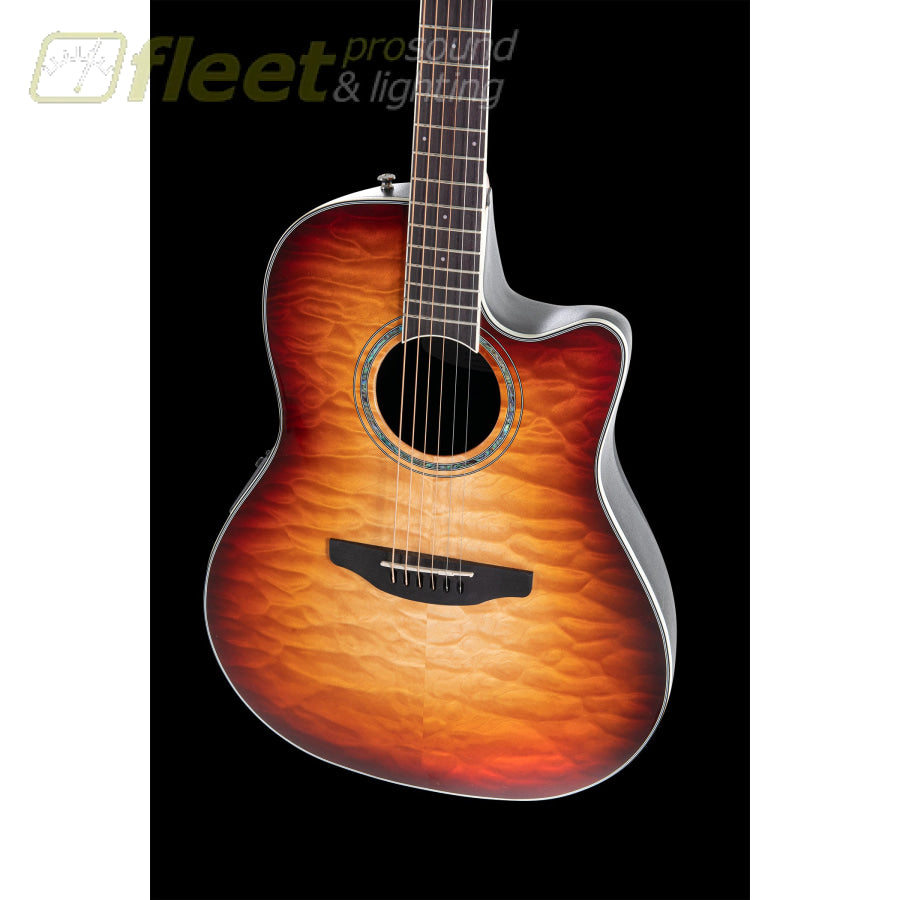 Ovation CS24X-7C Celebrity Standard Exotic Quilt Maple Acoustic / Electric Guitar, Cognac Burst / Natural Gloss