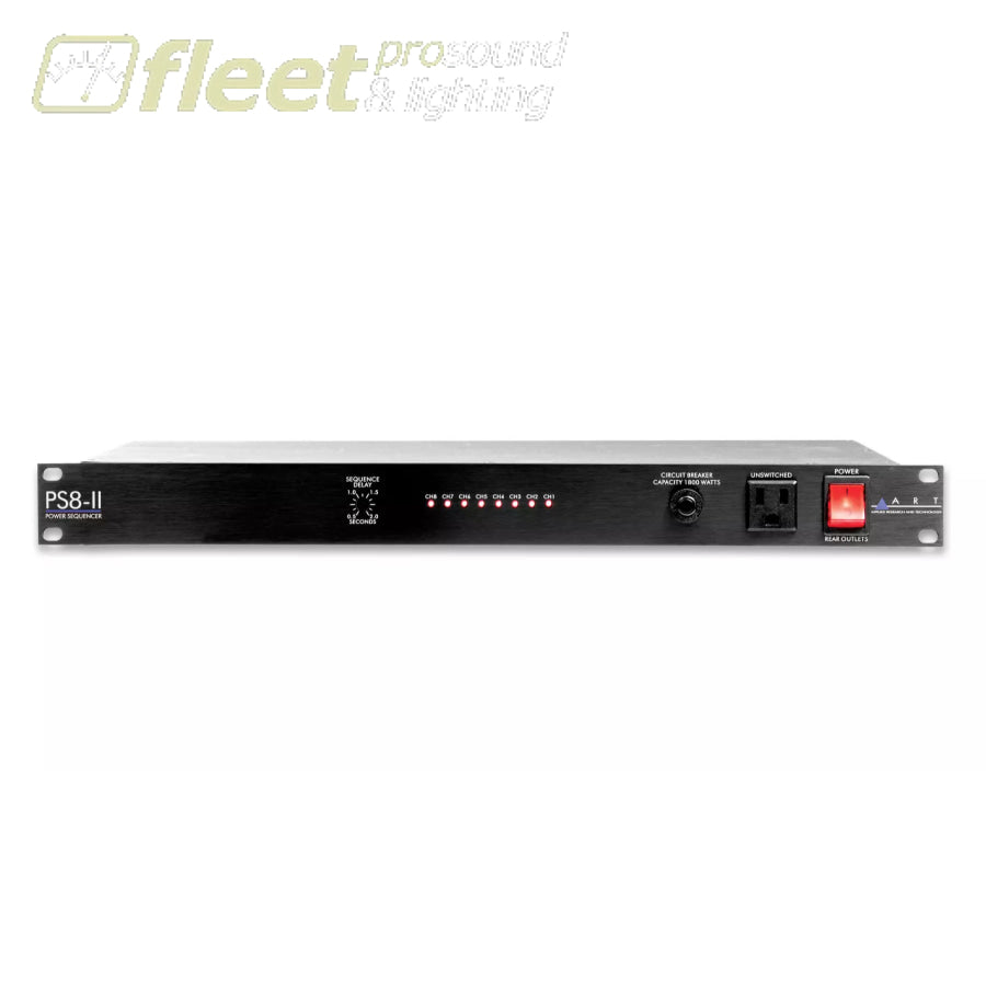The ART PS8-II provides controlled power sequencing to eight rear AC outlets. Each output's power up / power down is delayed by a fixed amount determined by the front panel user definable Sequence Delay control. This allows you to control the power up and down sequence in a system to smooth out inrush currents and minimize turn-on transients that may damage sensitive equipment.