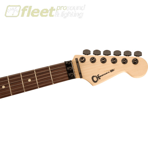 • Charvel®-branded sealed die-cast tuners, Charvel neck plate and standard strap button