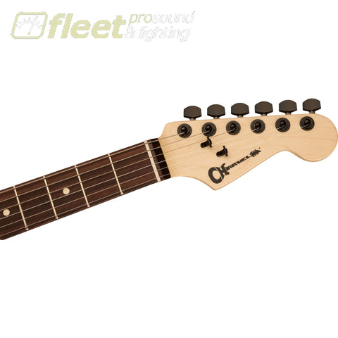 The volume control hides a push/pull coil split for even more highly useful tonal variations, ideal for everything from a biting lead sound to thick, chunky rhythm work. The no-load tone control operates like a standard tone control from positions one through nine, removing itself from the circuit at position ten for transparent sound that lets the full natural voice of the guitar shine through. A Charvel HT6 string-through-body hardtail bridge is designed for improved intonation and enhanced sustain and resonance.