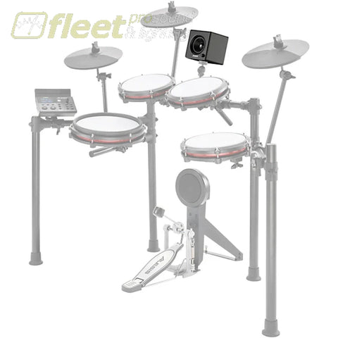 The Nitro Amp mounts directly to the Alesis Nitro drum rack. This positions it at ear level, making it comfortable to listen to at reasonable volumes while saving space and providing a streamlined, integrated monitoring option.