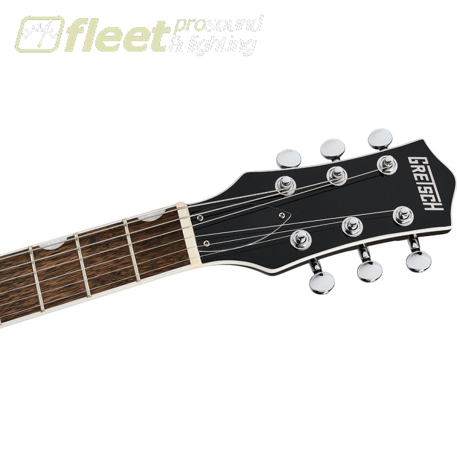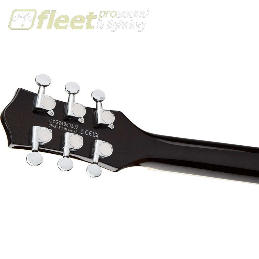 Equipped with FT-5E Filter'Tron pickups, this guitar offers the quintessential Gretsch power and clarity. These pickups are renowned for their classic chime, enhanced presence, and exceptional note definition, providing versatility and adaptability across various genres. The combination of the chambered body and these pickups results in thunderous, responsive lows, clear mids, and a sparkling high end that remains smooth and spike-free.