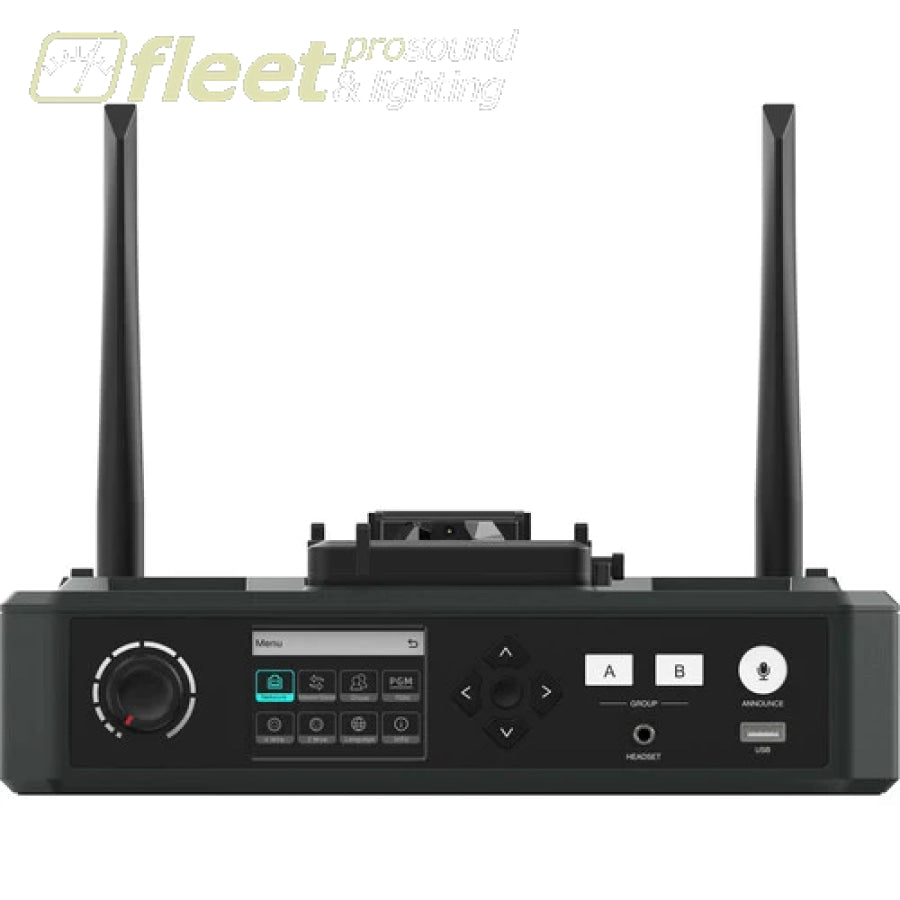 The included HUB offers additional features including A/B grouping and an Announce key that mutes all the headsets for emergency messages from the HUB base. The featured UAC (USB Audio Class) function enables the HUB to join in any cloud meeting running on Zoom, Skype, or similar meeting programs via the USB Type-C connection to your personal computer. The HUB provides three bays, allowing multiple battery power supplies from two NP-F batteries and/or one G-Mount battery (batteries available separately).