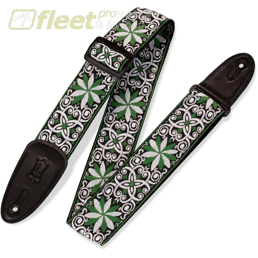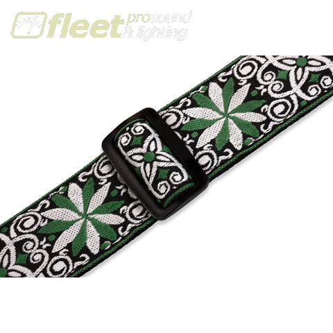 Levys M8HT-11 Floral Green & White Motif 60's 2" Wide Hootenanny Jacquard Weave Guitar Strap With Polypropylene Backing Includes Pin hole stitching to prevent stretching.