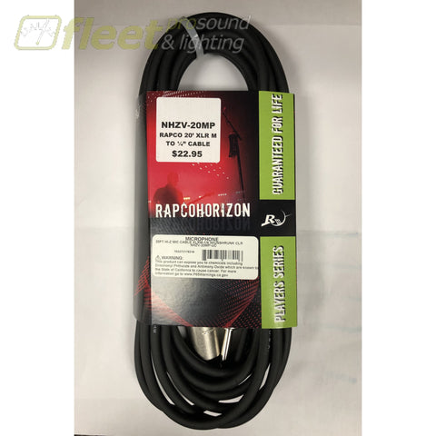 Rapco 20' XLR Male to 1/4" Mono Male Patch Cable